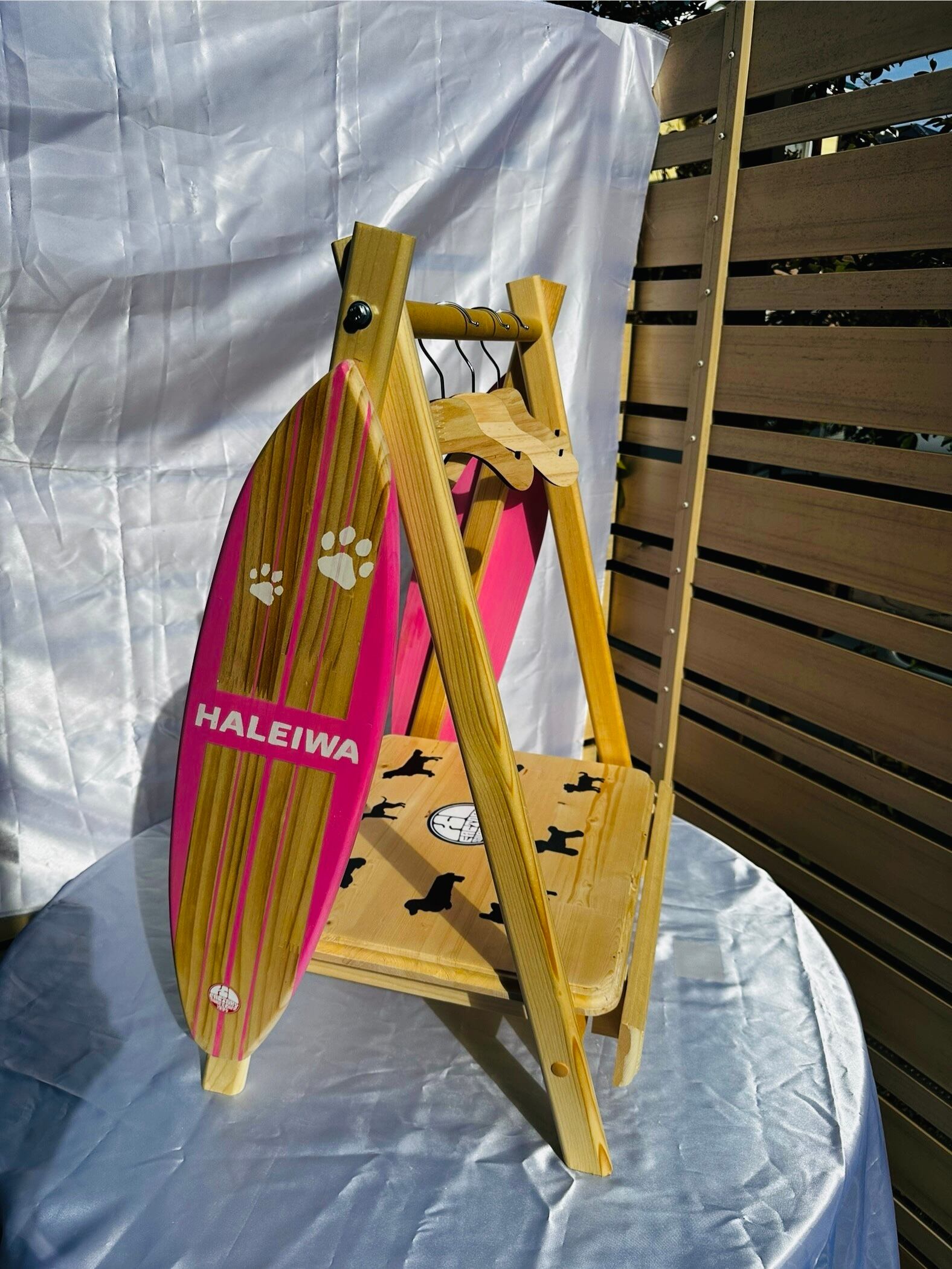 ペットと共に過ごす楽しい瞬間を、このサーフボード型のハンガーラックで演出してみませんか?商品の詳細やご質問については、ショップのお問い合わせからお気軽にご連絡ください。